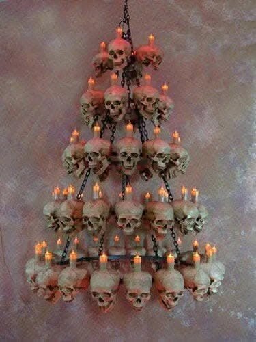 “Five-Tiered Life-Size Skull Chandelier With 60 Skulls” Haunted House Lighting