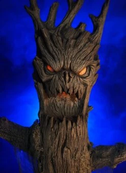 Rising from the dead vines of the pumpkin patch, a unique creature haunts these lands every fall. An embodiment of the death and decay that marks this season, the Samhain Demon is half pumpkin, half humanoid beast, and 100% deadly. He loves to pick off a wandering child, catch a worker wearily walking home after the late shift, or snag a drunk from the back alley behind a pub. If you know someone who has gone missing around this time of year, they’ve probably ended up his murderous clutches. The Samhain Demon Halloween decoration from The Horror Dome stands over eight feet tall. Hand painted and detailed by brilliant artists and craftspeople, this breath-taking sculpture is truly a macabre masterpiece. Surround him with Jack O’Lanterns, possessed scarecrows and a demented and dangerous farmer for a ghoulish garden scene. His light-up eyes will cause your guests to shake in fear.